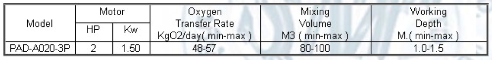 ข้อมูลเฉพาะPADDLE WHEEL AERATOR